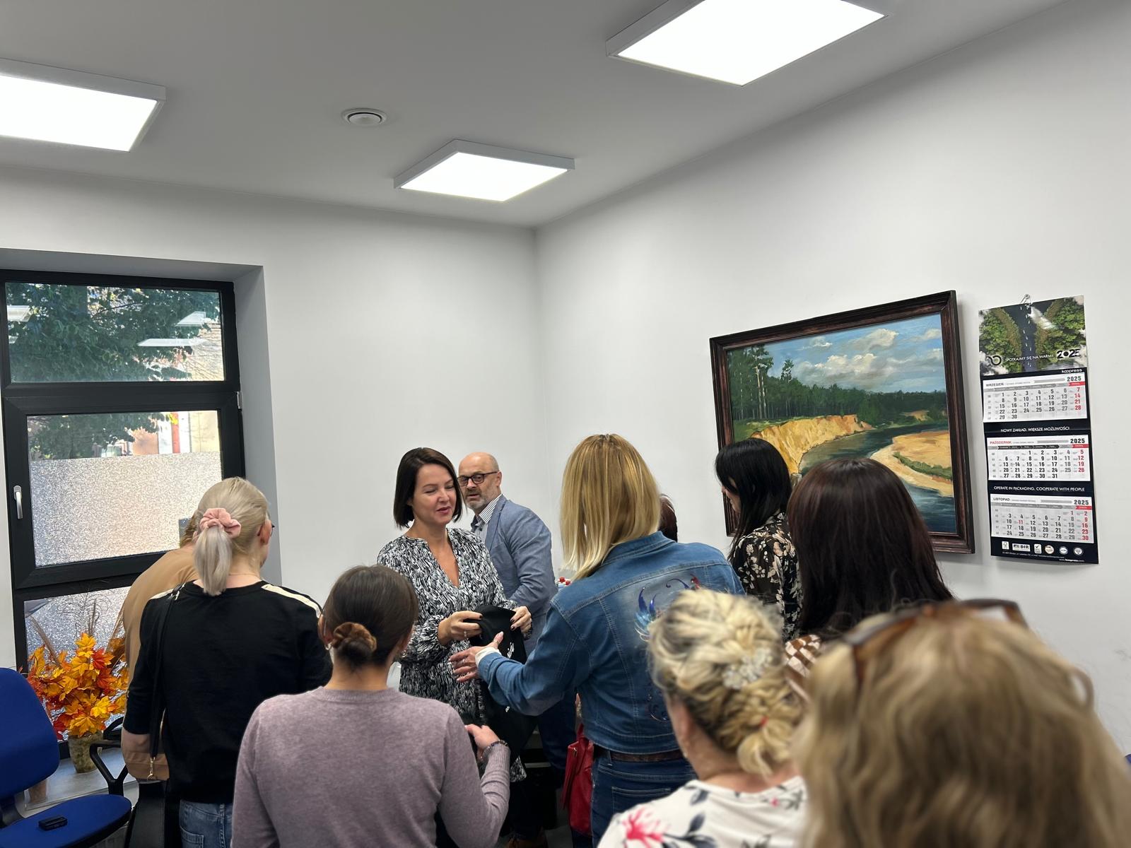 Na zdjęciu przedstawiony jest Dyrektor MOPSCOS w Zduńskiej Woli wraz z panią Katarzyną Kopcik wręczających torby bawełniane przeznaczone dla wszystkich uczestniczek projektu socjalnego z logo „Usłysz Siebie – odwaga zaczyna się od słów”