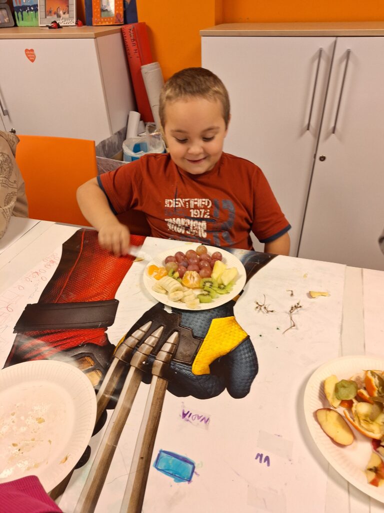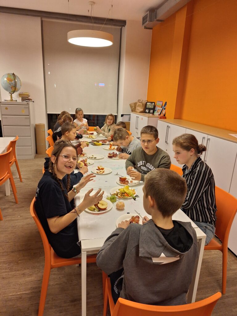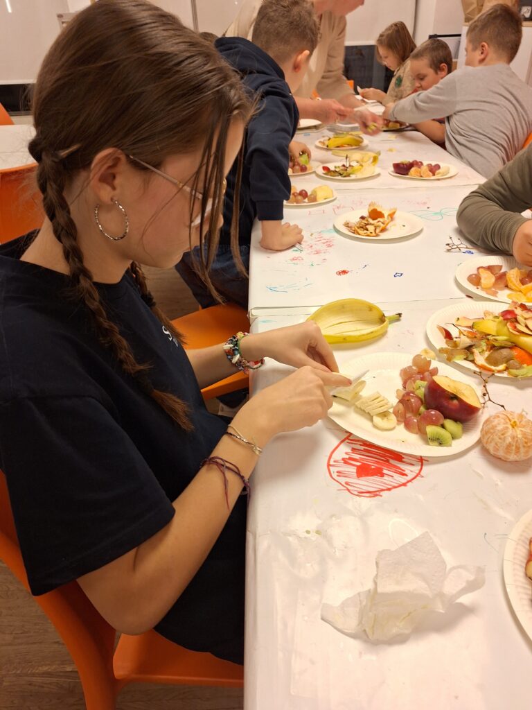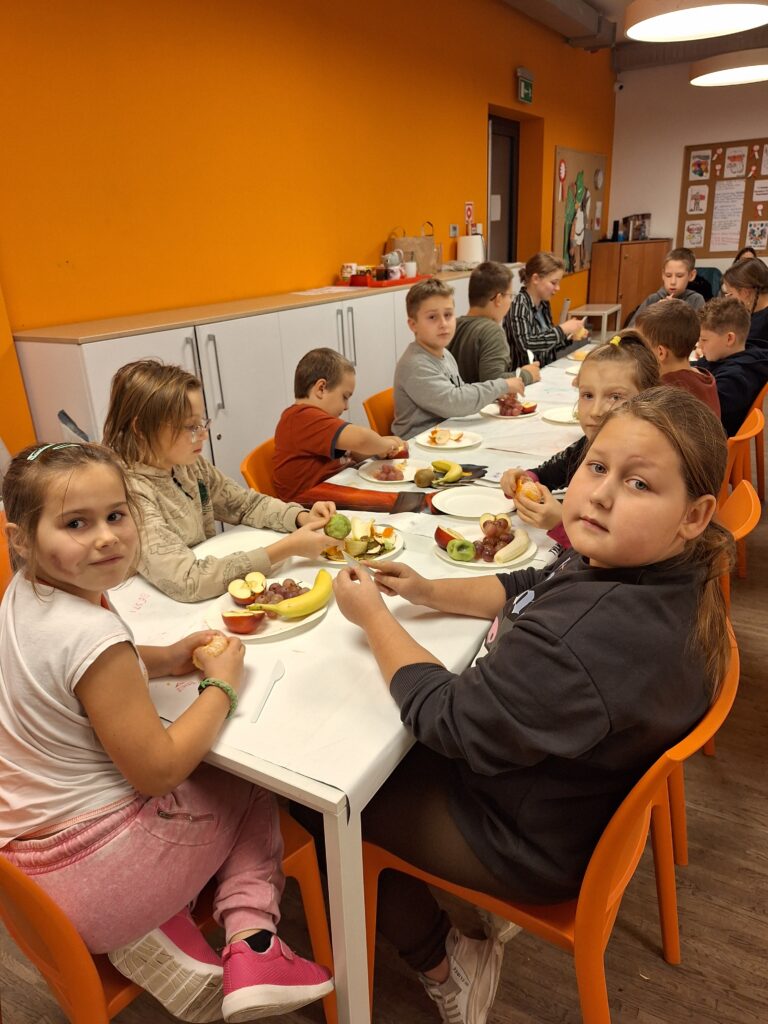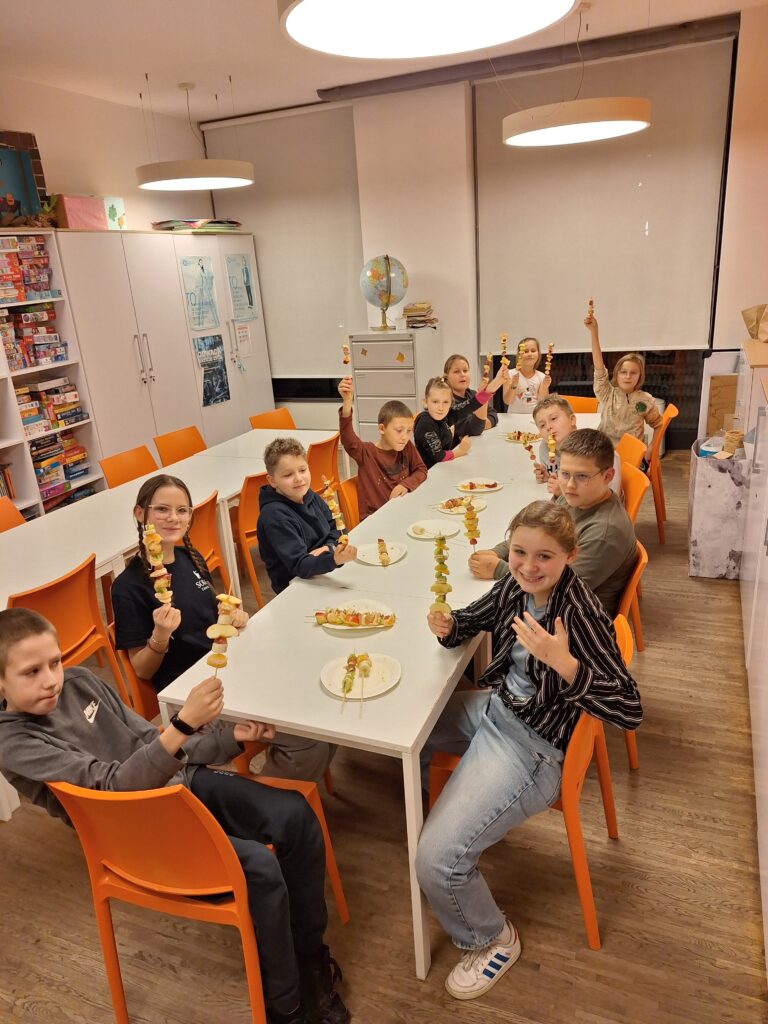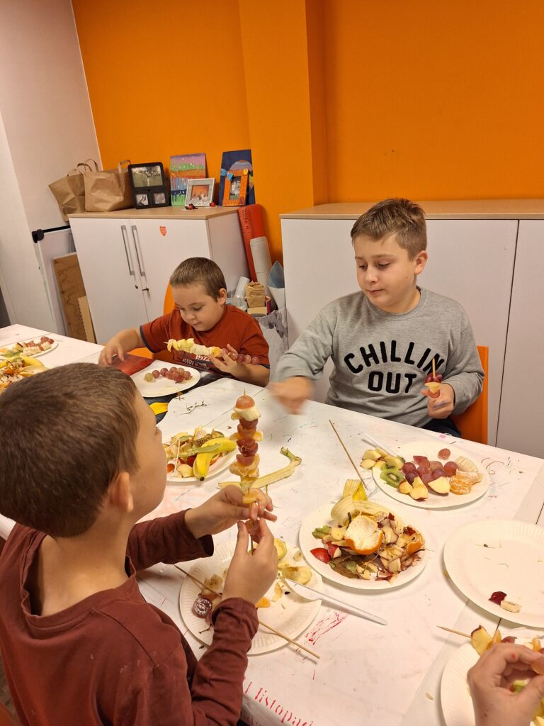 W Świetlicy środowiskowej odbyły się zajęcia o zdrowym żywieniu. Wychowankowie mieli okazję odkrywać nie tylko smak, ale i radość z tworzenia zdrowych przekąsek. Każdy stworzył własny, wyjątkowy szaszłyk owocowy. Zajęcia zaczęły się od krótkiego quizu dotyczącego wiedzy na temat zdrowych wartości odżywczych. Po teorii przyszła praktyka, podczas tworzenia szaszłyków, wychowankowie ćwiczyli zręczność manualną i uczyli się współpracy. Zabawa była pełna radości, a efektem końcowym – pyszne zdrowe przekąski, które dzieci mogły skosztować. Taka forma zajęć to doskonała okazja, by w przyjemny sposób wprowadzić dzieci w świat zdrowego odżywiania.