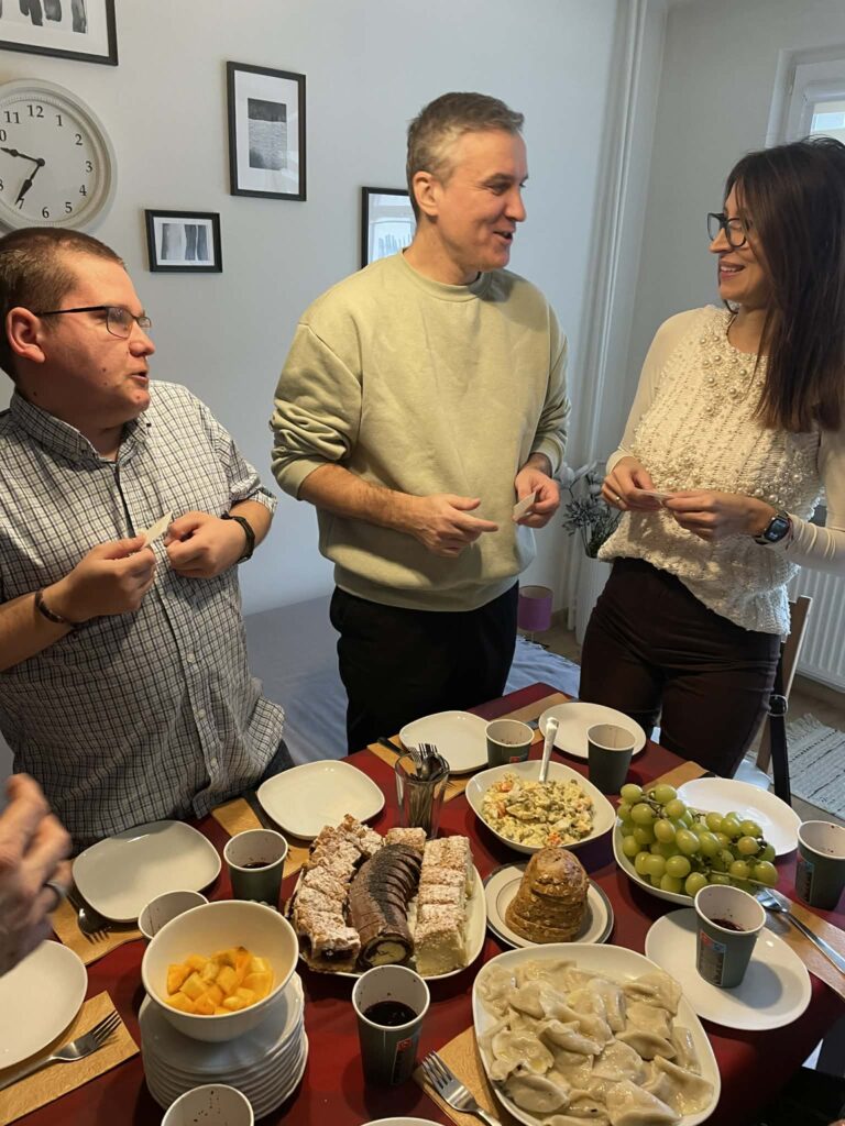 Po raz kolejny w mieszkaniu treningowym odbyło się świąteczne spotkanie wigilijne, podczas którego mieszkańcy z dużym zaangażowaniem opiekowali się gośćmi, jednocześnie doskonaląc umiejętności kulinarne. Wspólne chwile upłynęły w ciepłej, przyjaznej atmosferze, pełnej świątecznego nastroju i zapachu wigilijnych potraw.