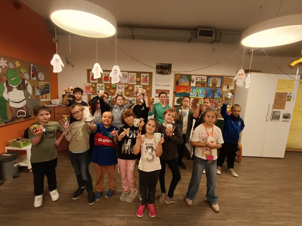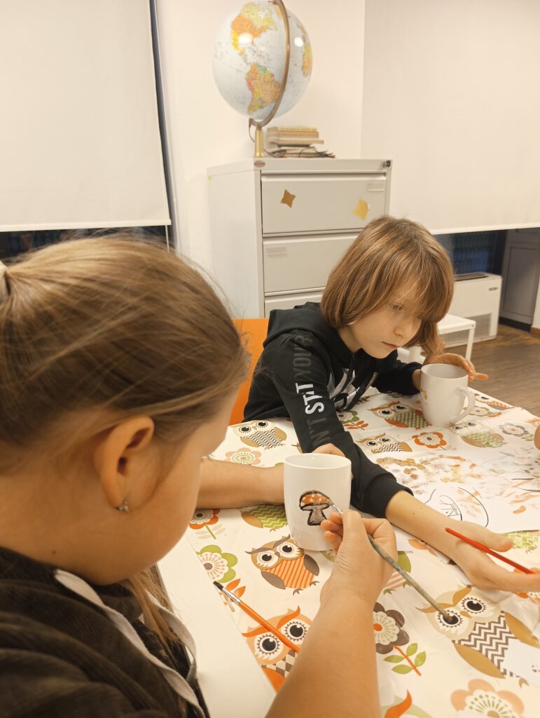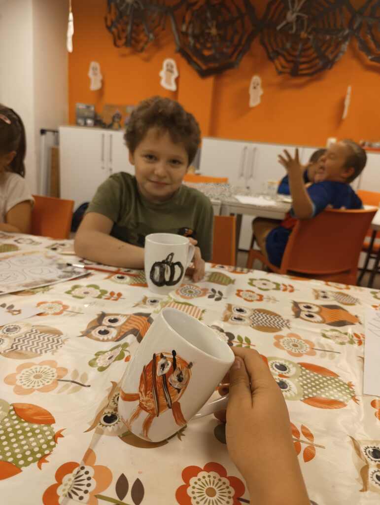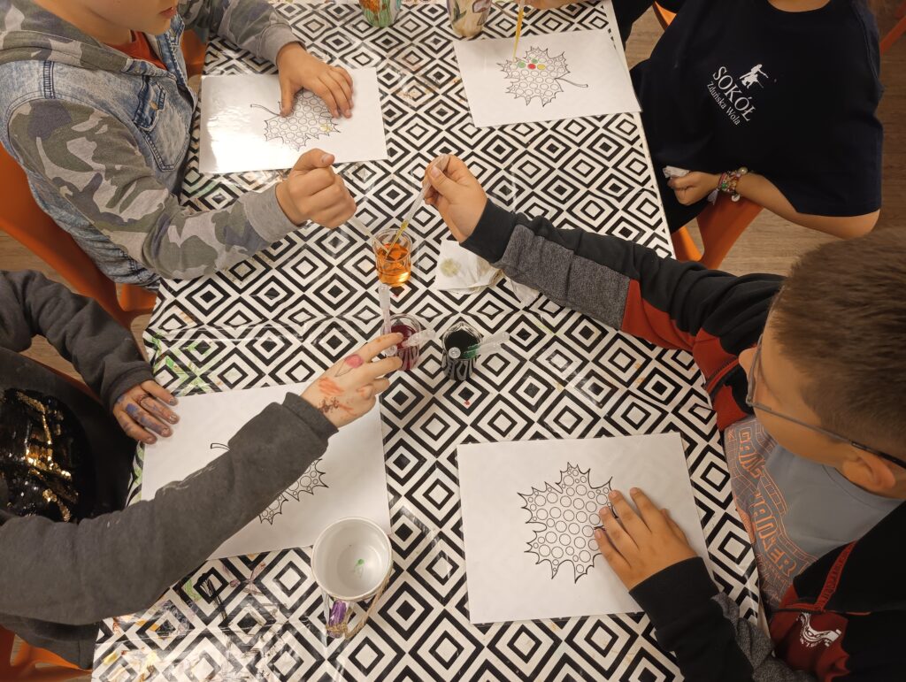 W jesienny poniedziałek wychowankowie Świetlicy środowiskowej uczestniczyli w zajęciach z Centrum Edukacyjne ATOM, na których własnoręcznie pomalowali kubki, inspirując się jesiennym wzorami. Mieli również okazję poćwiczyć swoją cierpliwość, pokrywając liście kolorowym roztworem używając pipety. Uwierzcie, to nie było takie proste jakby mogło się wydawać, ale do wykonania!